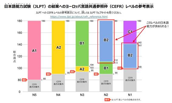 引用:日本語能力試験HP CEFRレベル参考表示 | 日本語能力試験 JLPT