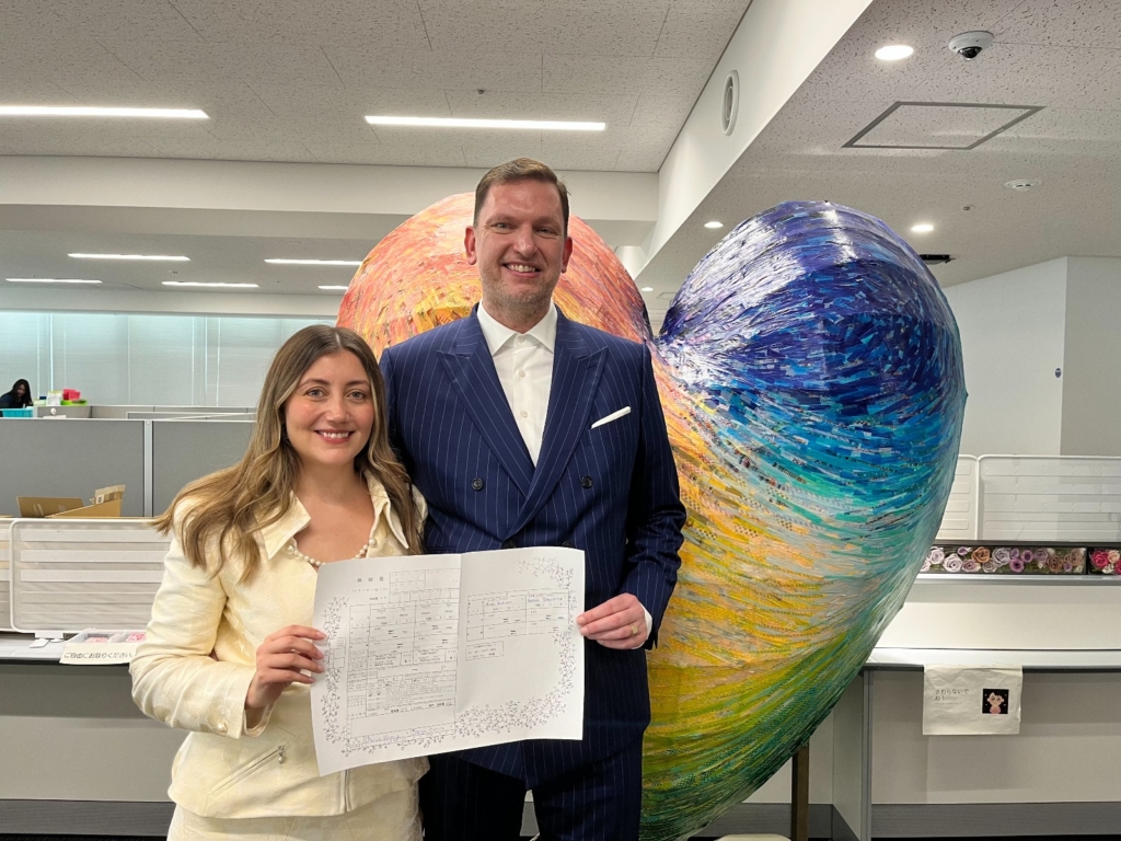お二人は昨年も日本を訪れており(その際は関西方面を中心に滞在されたそうです)、今回は東京滞在中に日本で正式に婚姻届を提出したいとのことでした。